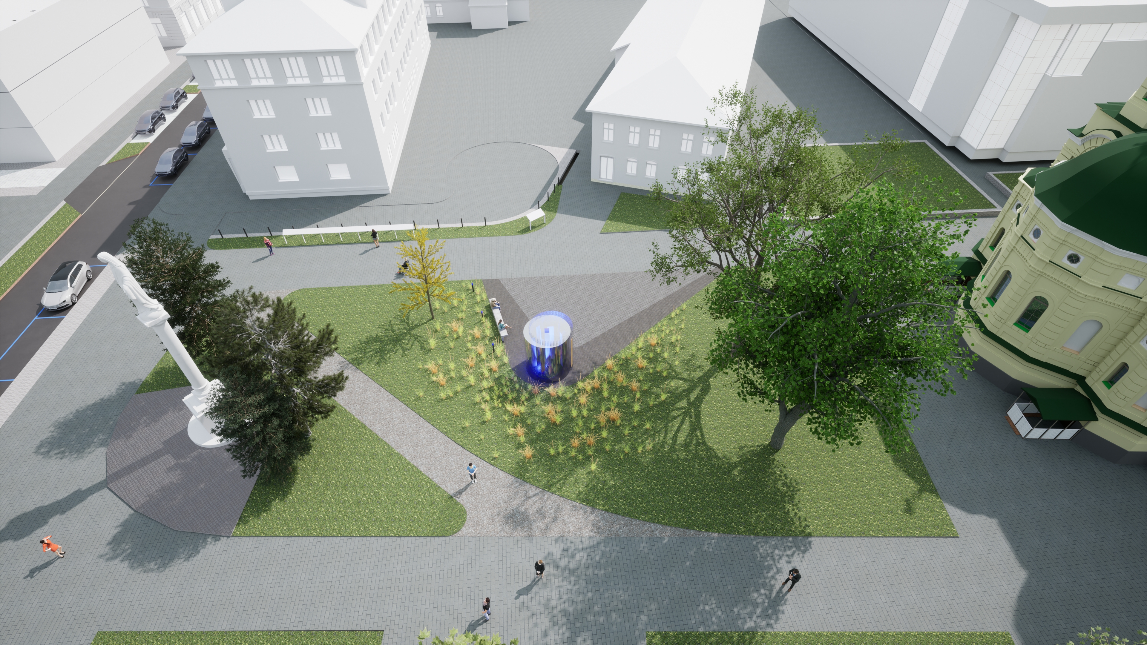 Завданням конкурсу вбачається обережне перепланування існуючої території зі збереженням цінних дерев, безконфліктною інтеграцією між пам’яткою архітектури Свято-Воскресенським собором, пам’яткою монументального мистецтва Колоною Божої Матері та існуючою пішохідною інфраструктурою невеликого, виокремленого громадського простору. В межах якого пропонується встановлення співмірного символу скверу - сучасного авторського об'єкта монументального мистецтва відповідного контексту.