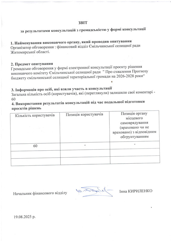 Організатор обговорення: фінансовий відділ Ємільчинської селищної ради Житомирської області.